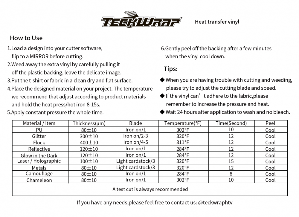 - يُنصح بشدة باستخدام المكبس الحراري لتثبيت الفينيل واتباع التعليمات الخاصة بكل نوع من أنواع الفينيل.